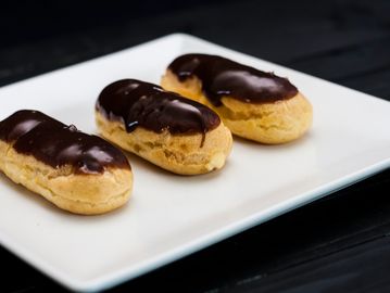A classic French pastry with a long, oblong shape, made from our delicate choux dough filled with our house made pastry cream and topped with dark chocolate
